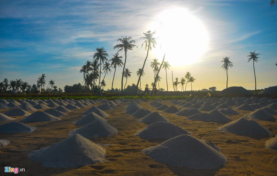 | Nông dân Lý Sơn chuẩn bị những ụ cát đều tăm tắp để làm đất trồng hành, tỏi tạo bức tranh huyền bí trong buổi bình minh ở khu vực di tích Suối Chình. PGS.TS Vũ Cao Minh, Viện Địa Chất – Viện Hàn Lâm Khoa học và Công nghệ Việt Nam, cho biết riêng huyện đảo này có 10 miệng núi lửa. Trong số này, 6 miệng núi lửa ở đảo Lớn, 1 miệng ở đảo Bé và 3 miệng còn lại ngầm dưới đáy biển. |